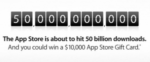转载自:搜狐IT 【搜狐IT消息】据国外媒体报道,苹果应用商店App Store中应用下载量今天达到500亿次。苹果将向下载第500亿款应用的幸运用户赠送价值10000美元App Store购物券。 另外,苹果还将向App Store应用下载量达到500亿次后头50名购买应用的用户赠送价值500美元的App Store购物券。 去年3月份,App Store应用下载量达到250亿次时,苹果向中国青岛的幸运用户付春礼(Chunli Fu,音译)赠送价值10000美元的App Store购物券以及到苹 详细